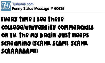 X Every time I see these college/university commercials on TV, the my brain just keeps screaming (SCAM!, SCAM!, SCAM!, SCAAAAAAM!)