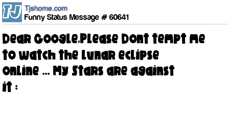 X is Dear Google,Please Dont tempt me to watch the lunar eclipse online ... My Stars are against it :|