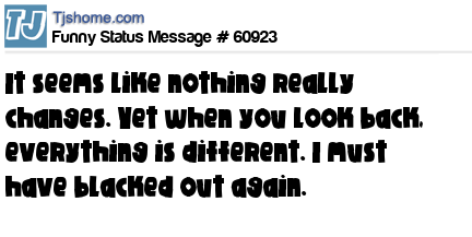 X It seems like nothing really changes. Yet when you look back, everything is different. I must have blacked out again.