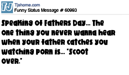 X is Speaking of Fathers Day... The one thing you never wanna hear when your father catches you watching porn is... "Scoot over."