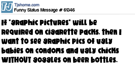 - # 37153 If cigarettes are required to have graphic warning labels, beer manufacturers should have to warn drinkers of possible sex with ugly people...