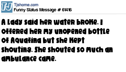 X A lady said her water broke. I offered her my unopened bottle of Aquafina but she kept shouting. She shouted so much an ambulance came.