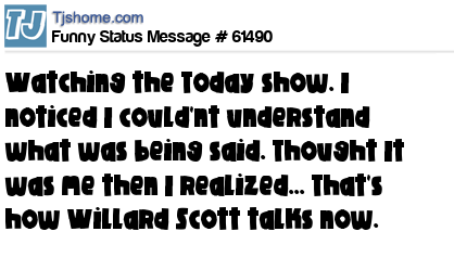 X Watching the Today show. I noticed I could'nt understand what was being said. Thought It was me then I realized... That's how Willard Scott talks now.