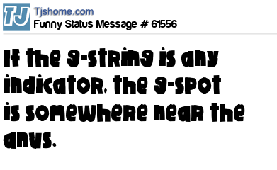 X If the g-string is any indicator, the g-spot is somewhere near the anus.