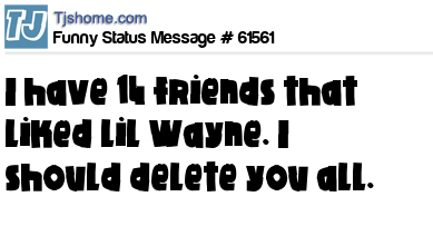 X I have 14 friends that liked Lil Wayne. I should delete you all.