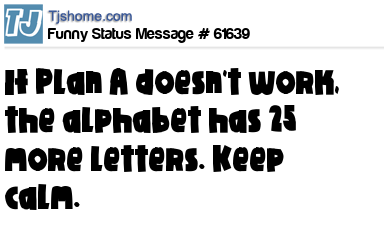 - # 62436 Plan A doesn't work in your love life, the alphabet has 25 more letters. Keep calm.