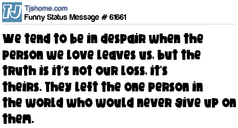 X We tend to be in despair when the person we love leaves us, but the truth is it's not our loss, it's theirs. They left the one person in the world who would never give up on them.