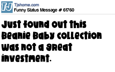 - # 47455 Took my Beanie Baby collection to a Pawn Shop today. Really thought they'd be worth a lot more. Back in the safe they go.