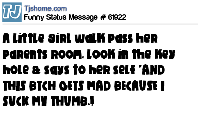 X is A little girl walk pass her parents room, look in the key hole & says to her self "AND THIS BTCH GETS MAD BECAUSE I SUCK MY THUMB.!