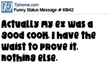 X says Actually my ex was a good cook, I have the waist to prove it, nothing else.