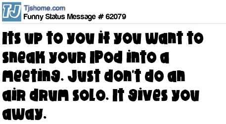 X says Its up to you if you want to sneak your IPod into a meeting. Just don't do an air drum solo. It gives you away.
