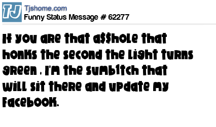 X is If you are that a$$hole that honks the second the light turns green , I'm the sumb1tch that will sit there and update my Facebook.