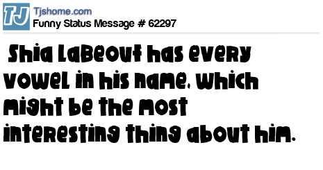 X says Shia LaBeouf has every vowel in his name, which might be the most interesting thing about him.