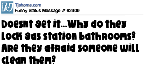 - # 23869 Why do they lock gas station bathrooms? Are they afraid someone will clean them?