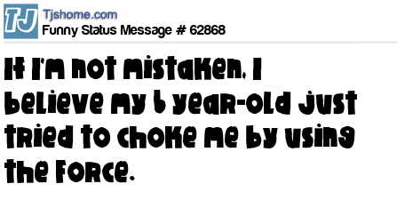X says If I'm not mistaken, I believe my 6 year-old just tried to choke me by using the Force.