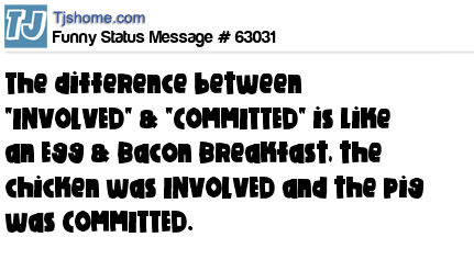 - # 20720 The difference between 'involvement' and 'commitment' is like an eggs-and-ham breakfast: the chicken was 'involved' - the pig was 'committed'