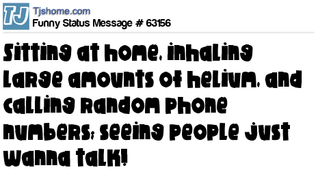X is Sitting at home, inhaling large amounts of helium, and calling random phone numbers; seeing people just wanna talk!