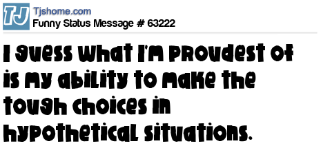 X I guess what I'm proudest of is my ability to make the tough choices in hypothetical situations.