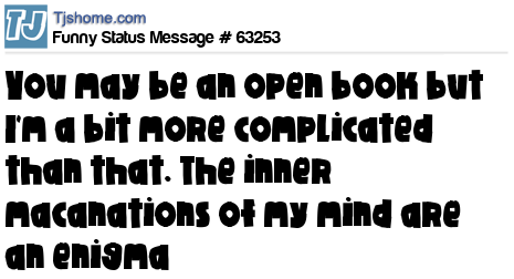 - # 63264 You may be an open book but I'm a bit more complicated than that. The inner machinations of my mind are an enigma