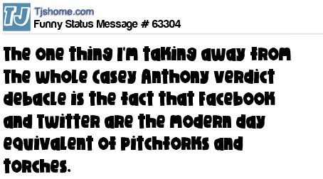 X says The one thing I'm taking away from The whole Casey Anthony verdict debacle is the fact that Facebook and Twitter are the modern day equivalent of pitchforks and torches.