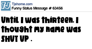 X says Until I was thirteen, I thought my name was SHUT UP .
