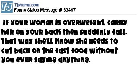 X is  If your woman is overweight, carry her on your back then suddenly fall. That way she'll know she needs to cut back on the fast food without you ever saying anything.