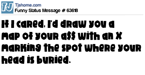 - # 40220 IF I cared, I'd draw you a map of your ass with an X marking the spot where your head is buried."