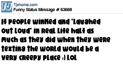 X says If people winked and "laughed out loud" in real life half as much as they did when they were texting the world would be a very creepy place ;) lol