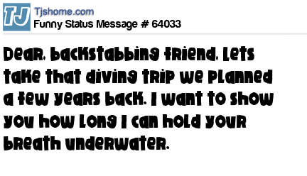 X is Dear, backstabbing friend, Lets take that diving trip we planned a few years back. I want to show you how long I can hold your breath underwater.