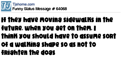X is If they have moving sidewalks in the future, when you get on them, I think you should have to assume sort of a walking shape so as not to frighten the dogs