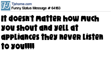 X says It doesn't matter how much you shout and yell at appliances they never listen to you!!!!