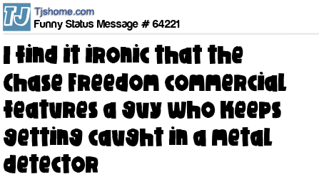 X is I find it ironic that the Chase Freedom commercial features a guy who keeps getting caught in a metal detector