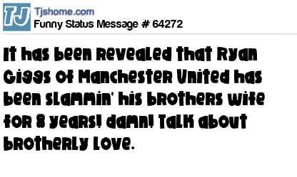 X says It has been revealed that Ryan Giggs of Manchester United has been slammin' his brothers wife for 8 years! damn! Talk about brotherly love.