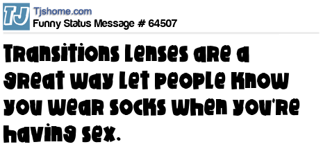 X Transitions Lenses are a great way let people know you wear socks when you're having sex.
