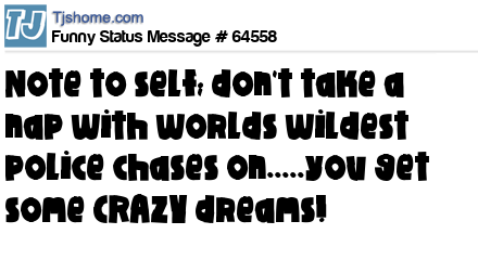 X says Note to self; don't take a nap with worlds wildest police chases on.....you get some CRAZY dreams!