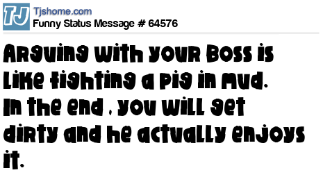 X says Arguing with your Boss is like fighting a pig in mud. In the end , you will get dirty and he actually enjoys it.