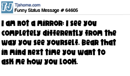 X says I am not a mirror: I see you completely differently from the way you see yourself. Bear that in mind next time you want to ask me how you look.