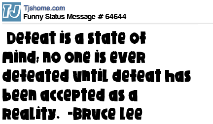 X “Defeat is a state of mind; no one is ever defeated until defeat has been accepted as a reality.” -Bruce Lee