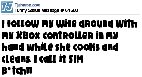X is I follow my wife around with my XBox controller in my hand while she cooks and cleans, I call it SIM B*tch!!