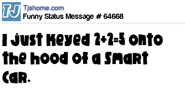 X I just keyed 2+2=5 onto the hood of a Smart Car.