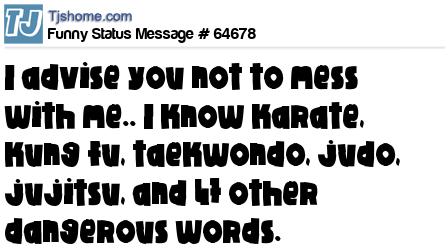 X I advise you not to mess with me.. I know karate, kung fu, taekwondo, judo, jujitsu, and 47 other dangerous words.