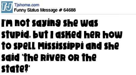 X I'm not saying she was stupid, but I asked her how to spell Mississippi and she said 'the river or the state?'