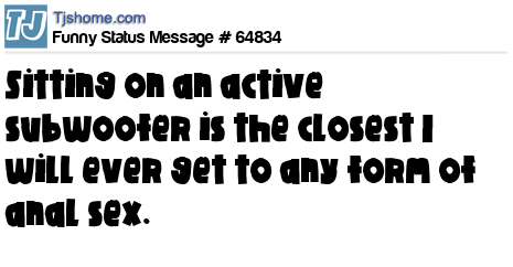 X Sitting on an active subwoofer is the closest I will ever get to any form of anal sex.