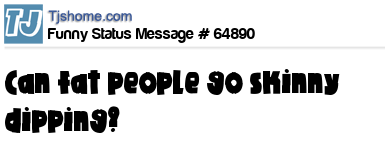 - # 105375 Girlfriend wanted to go skinny dipping. I said your not skinny enough to be dipping. And that's how the fight started.
