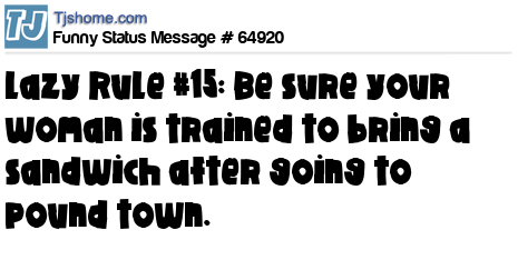 X Lazy Rule #15: Be sure your woman is trained to bring a sandwich after going to pound town.
