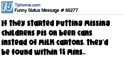 X is if they started putting missing childrens pis on beer cans instead of milk cartons, they'd be found within 15 mins..