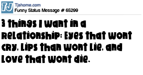 X is 3 things I want in a relationship: Eyes that wont cry, lips than wont lie, and love that wont die.