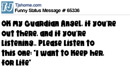 X Ok my Guardian Angel, if you're out there, and if you're listening.. Please listen to this one: "I want to keep her, for life"