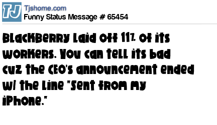 X says BlackBerry laid off 11% of its workers. You can tell its bad cuz the CEO's announcement ended w/ the line "Sent from my iPhone."