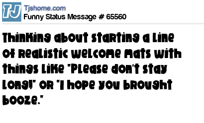 X Thinking about starting a line of realistic welcome mats with things like "Please don't stay long!" or "I hope you brought booze."